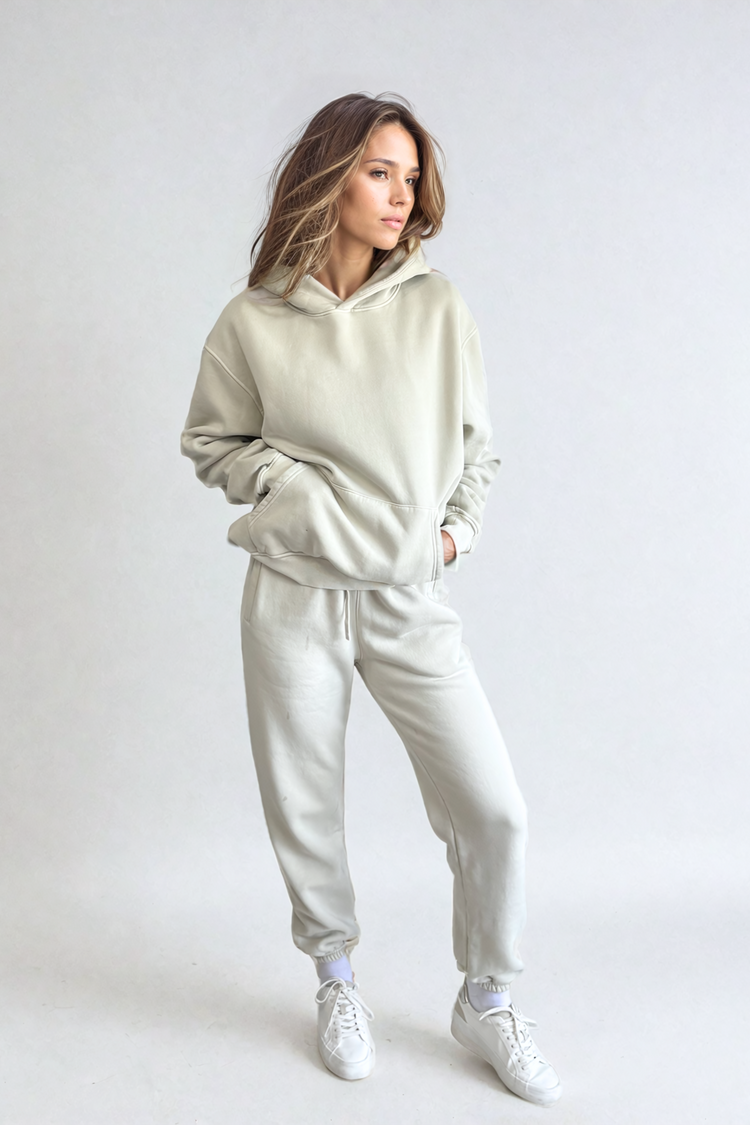 Experience the epitome of casual chic with the Lay-Up Lounge Set in Coco Cream, a two-piece sweat ensemble designed for unparalleled comfort and style. Boasting long sleeves and a relaxed, loose fit, this set invites you to lounge in effortless fashion throughout any season.