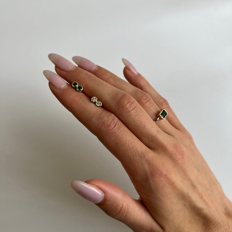Bezel studs offer a classic and elegant look: the cz stones are carefully cut to fit in bezel settings and are embedded on gold vermeil. An ideal choice for an everyday jewelry piece.