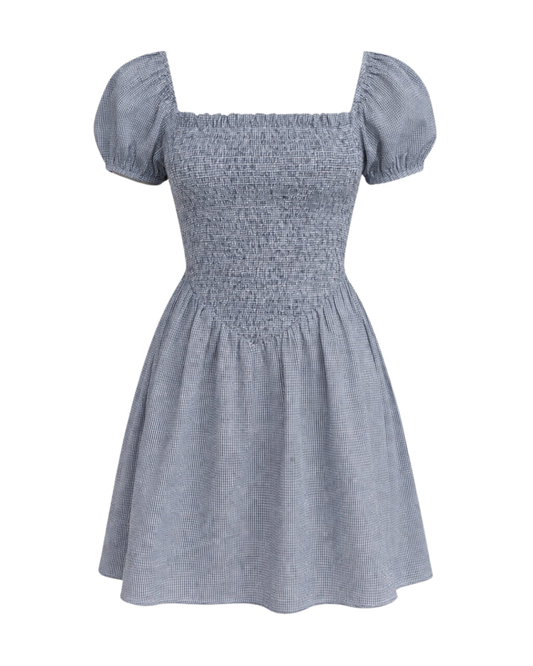 Ramona - Smocked Puff Sleeve Square Neck Dress Black Gingham