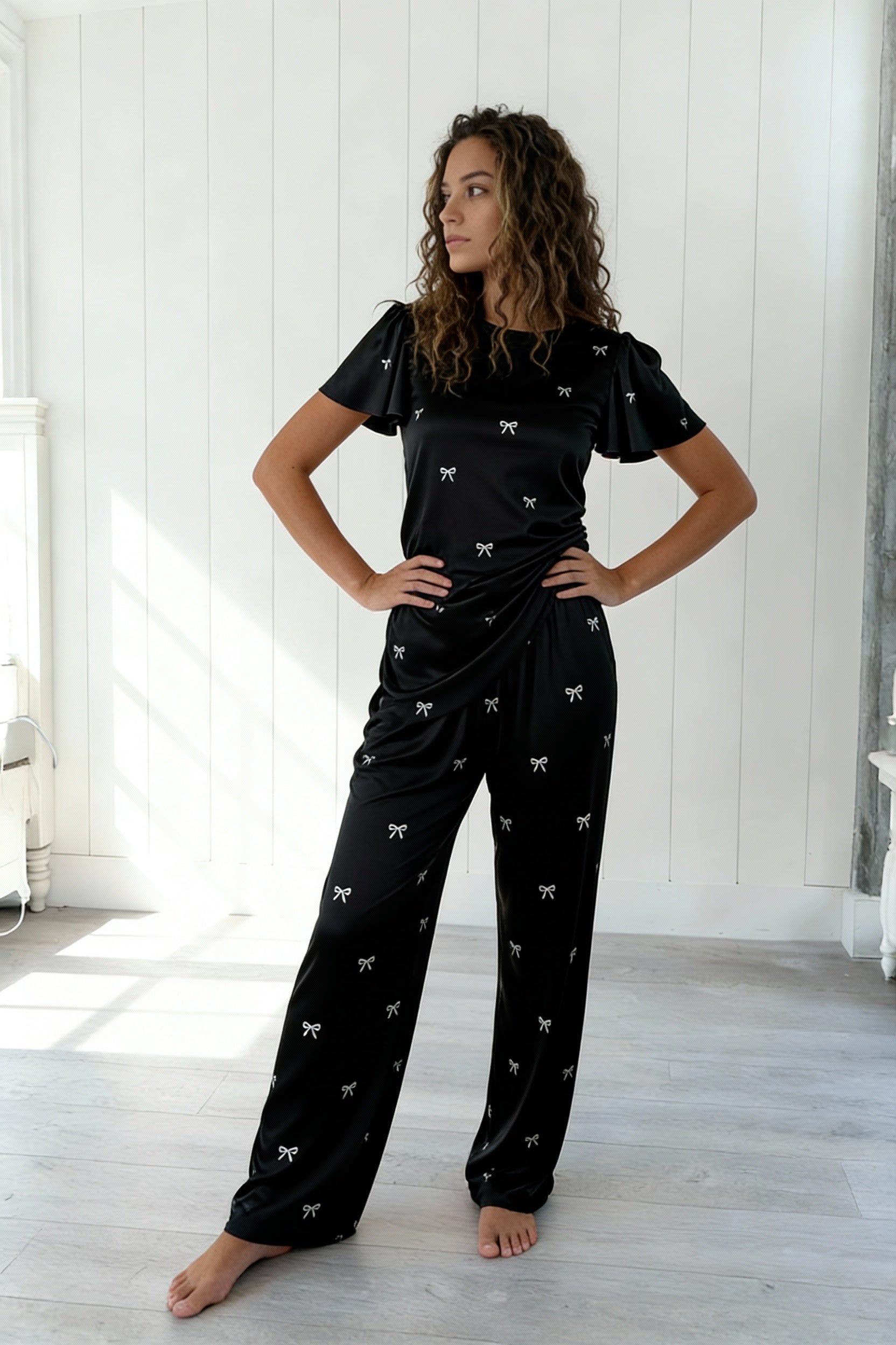 Winter Bows Silky PJ’s Black