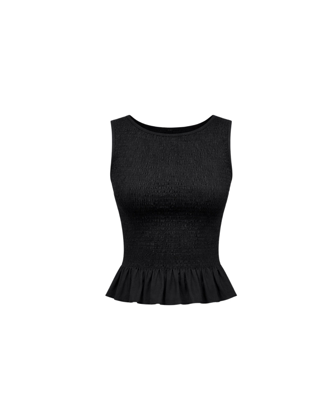 Chrissy - Ruffle Hem Ribbed Cotton Feminine T-Shirt In Black