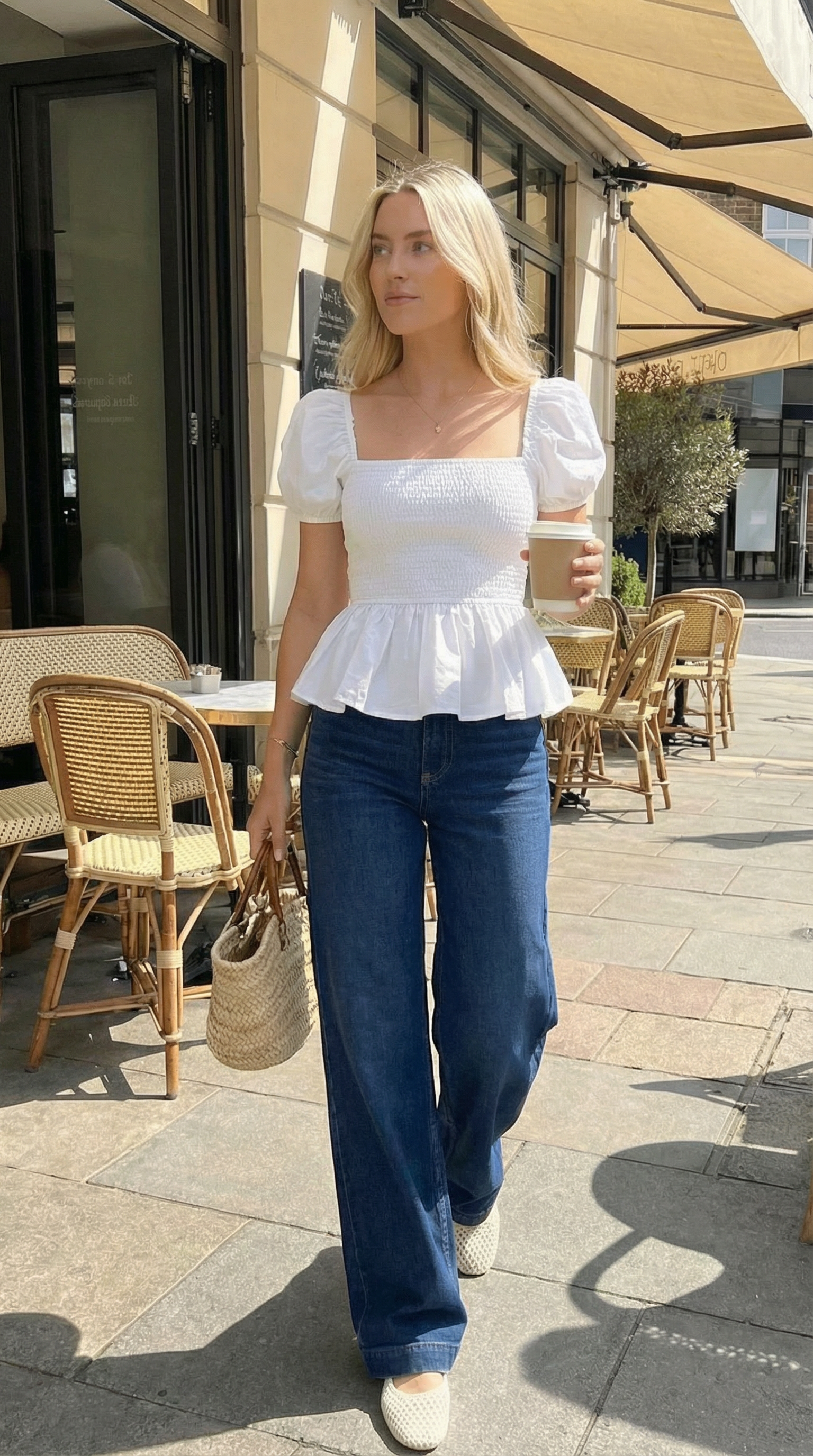 Sera – Cotton Poplin Puff Sleeve Peplum Blouse Top In White