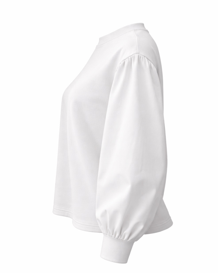 The Lacelle Long Sleeve Blouse combines crisp poplin puff sleeves with a soft cotton–spandex bodice, merging structure and ease in one refined silhouette.