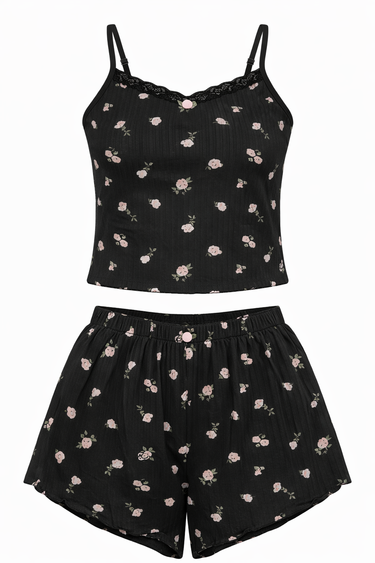 Stevie 2pc Tank & Shorts Sleep Set Black
