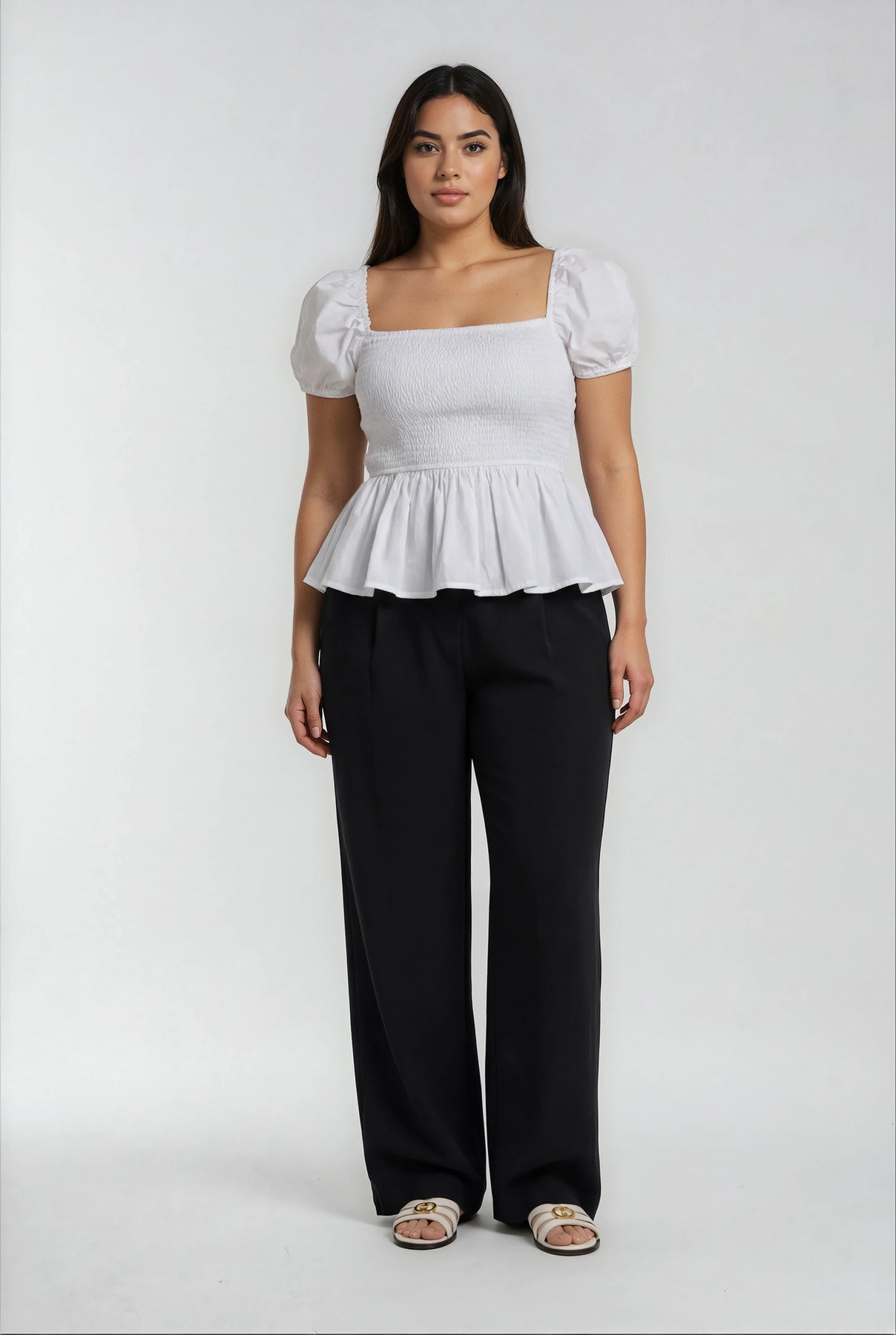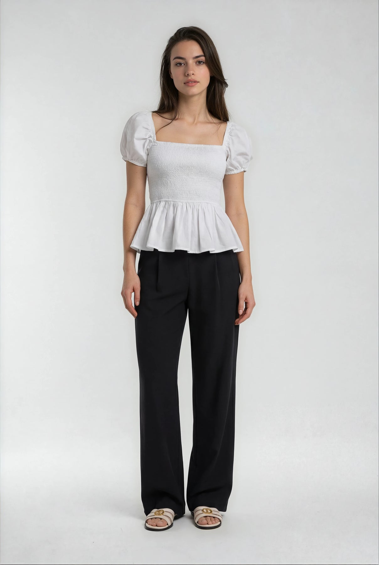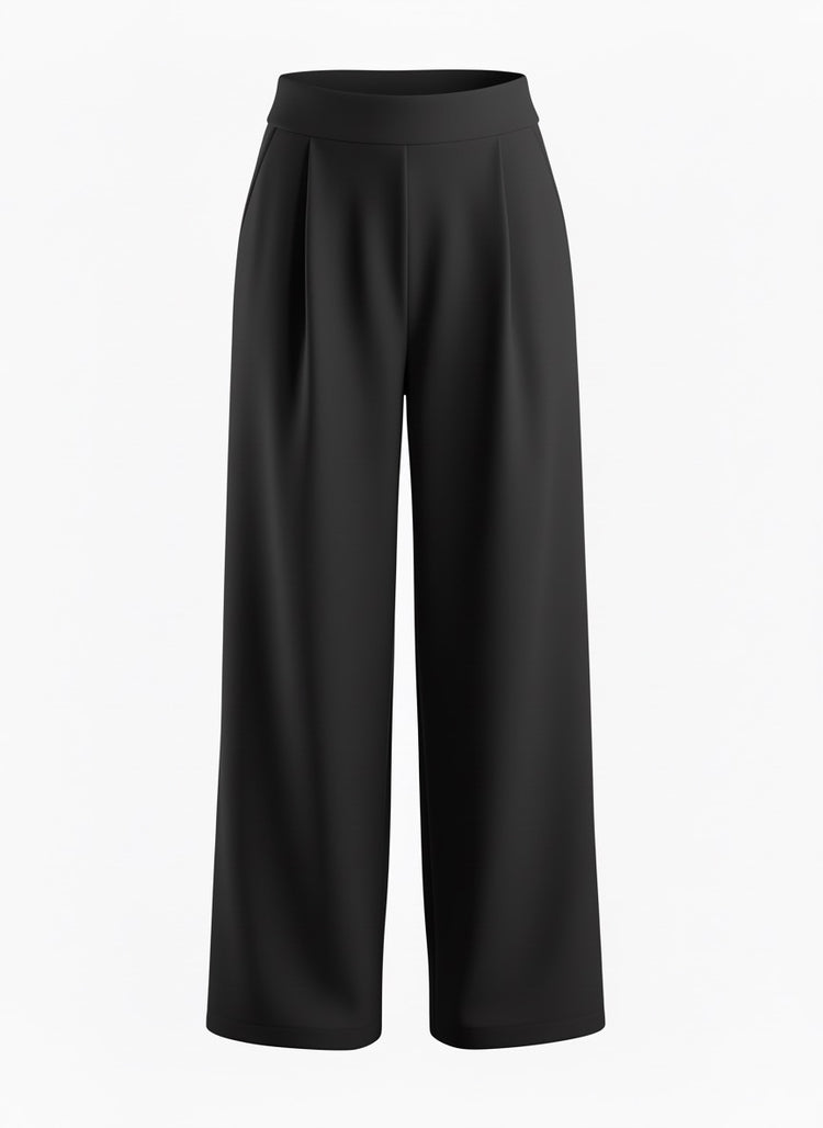 LuxeFlow Trouser Pant – Pleated Pull-On Wide Leg Pant Black